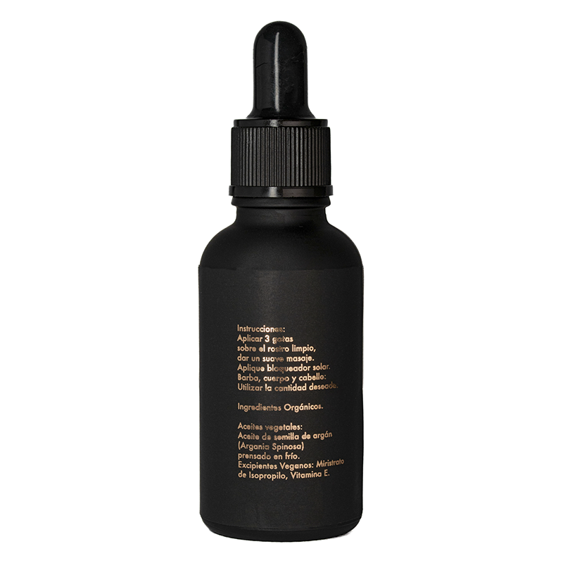 Instrucciones: Con las manos y el rostro limpio y húmedo frotar tres gotas en las palmas aplicar en el rostro dando ligero masaje linfático, aplicar el resto en el cabello, barba, brazos y el resto del cuerpo. Para el cabello aplicar tres gotas en las palmas de las manos y aplicar de puntas a medios.