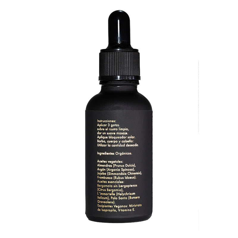 Instrucciones: Con las manos y el rostro limpio y húmedo frotar tres gotas en las palmas y percibir el aroma de las mismas, aplicar en el rostro dando ligero masaje linfático, aplicar el resto en el cabello, barba, brazos y el resto del cuerpo. Repetir las veces deseadas.