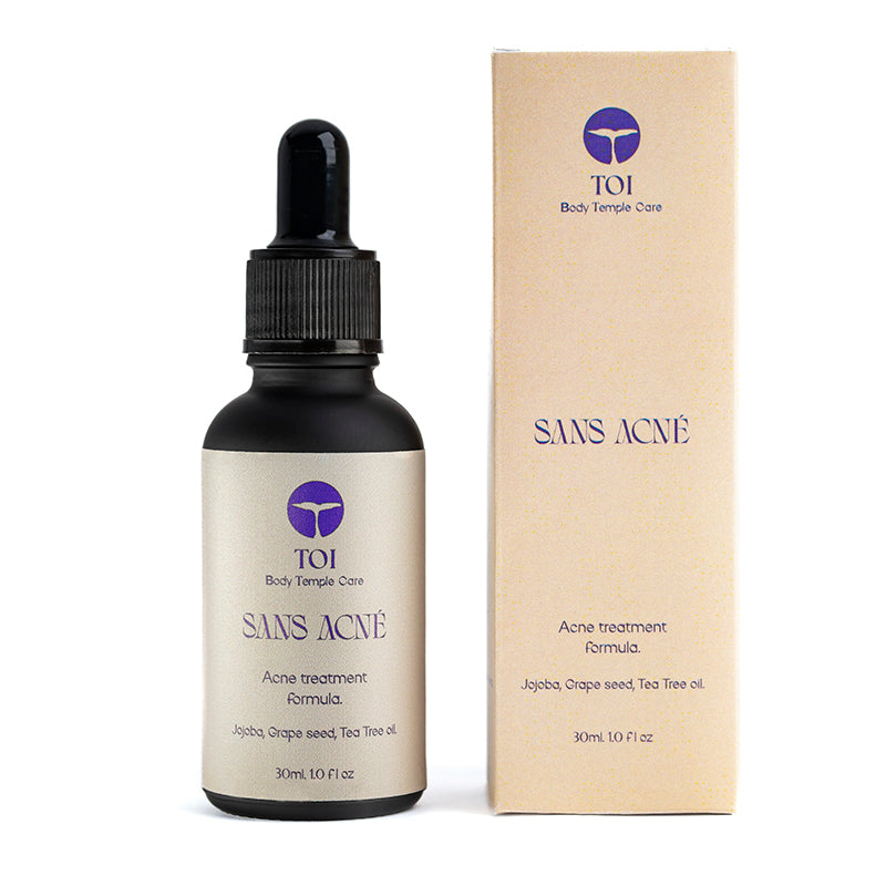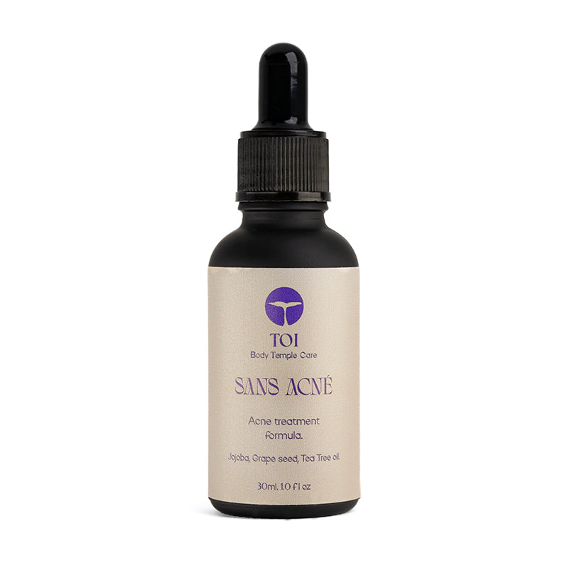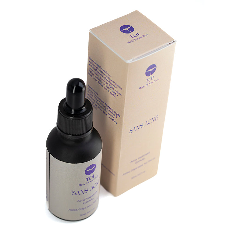 SANS ACNE. Sérum facial anti-acné base oleosa. El acné aparece por diversas causas, algunas de ellas son la inflamación, poros obstruidos y bacterias. La combinación de aceites prensados en frío de jojoba, pepita de uva y aceite esencial de árbol de té resulta altamente eficaz en el tratamiento de esta afección. Ligero, seborregulador y de rápida absorción, este sérum además contiene propiedades antiinflamatorias y antibacteriales que mantienen el acné a raya y dejan a cambio una piel consentida y sana. Pieles grasas, con rosácea y pieles normales también se ven beneficiadas con esta poción antioxidante cargada de resveratrol y ácidos grasos Omega.
