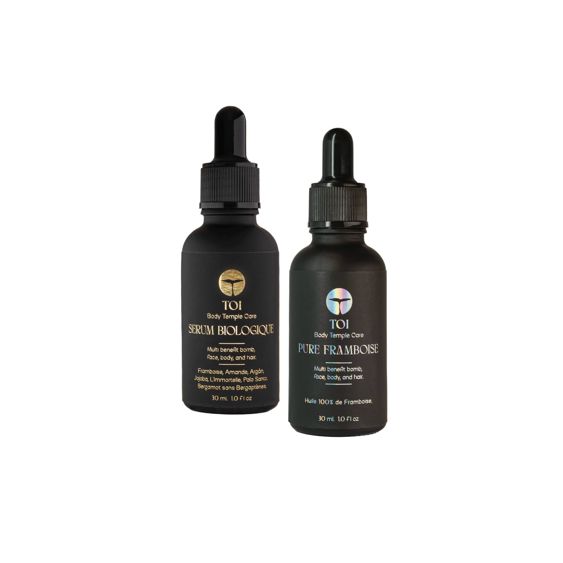 Especial para cara y cuerpo. Dos serums de aceites corporales ricos en antioxidantes, omegas, vitaminas y bioactivos para el cuidado corporal, del rostro y del cabello. Ideal para integrarlos a cualquier rutina o para el enriquecimiento de otros productos.